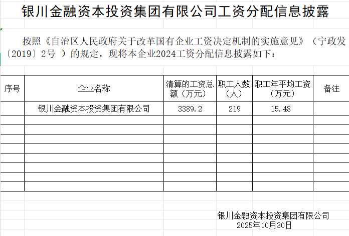 銀川金融資本投資集團有限公司工資分配信息披露
